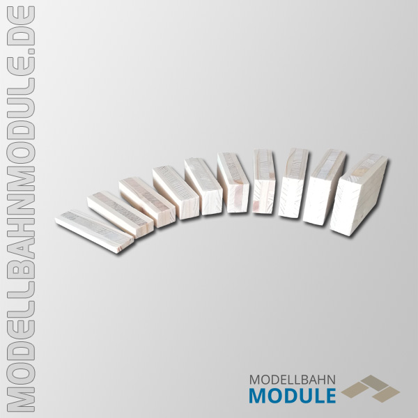 Pfeiler für Auf- und Abfahrten Ihrer Modellbahn. 10 Stück: 5, 10, 15, 20, 25, 30, 35, 40, 45 und 50 mm Höhe. Siehe NEM 102 für die Durchfahrtshöhen Ihrer Spurweite.
